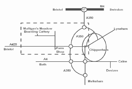 Mulligan's Meadow is situated off the A420 1 mile west of Chippenham. At the Allington Farm Shop cross-roads follow the sign for Allington Village. Proceed 500 yards, taking the first small, unsigned, singletrack